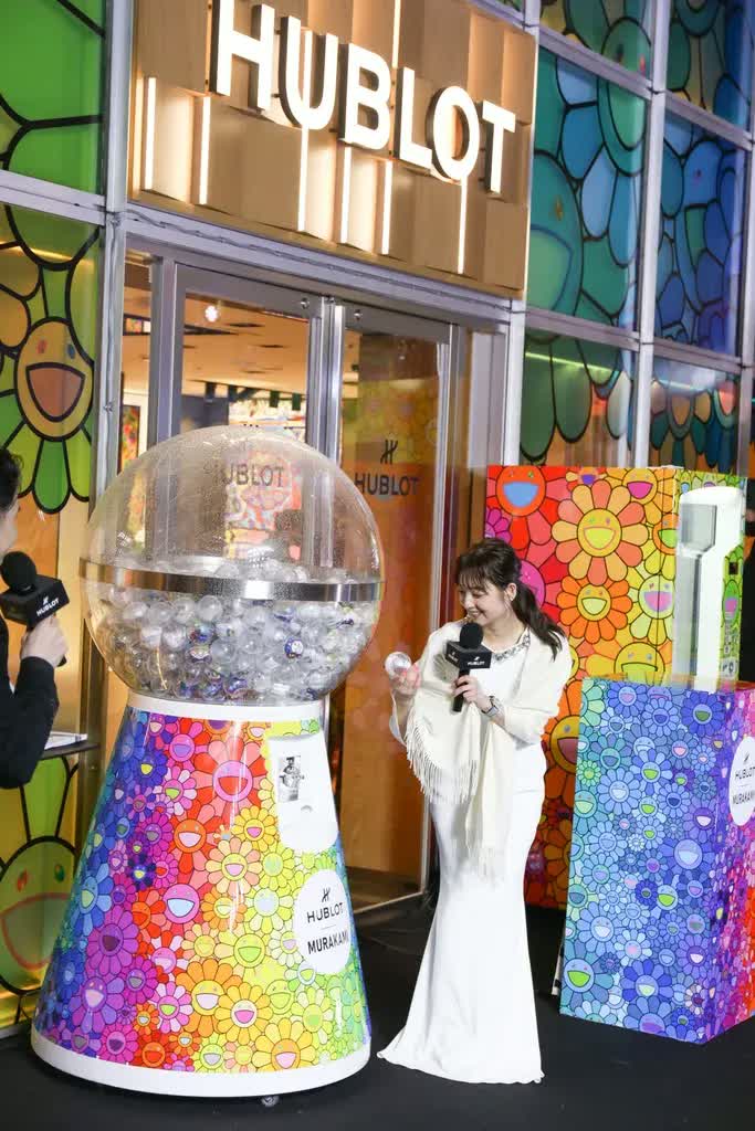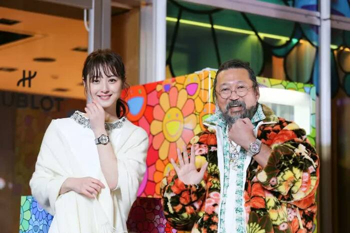 村上とウブロがコラボレーションした最新モデルがお披露目されると、それを間近で見た佐々木は「お花が回るたびに輝きがすごくて、とても感動しています!」と目を輝かせていた。動く文字盤にはサファイアクリスタルが使用されており、価格は1200万円以上もするそう。