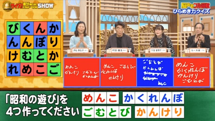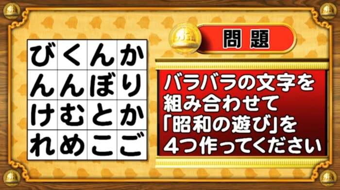 バラバラの文字を組み合わせて「昭和の遊び」を4つ作ってください。