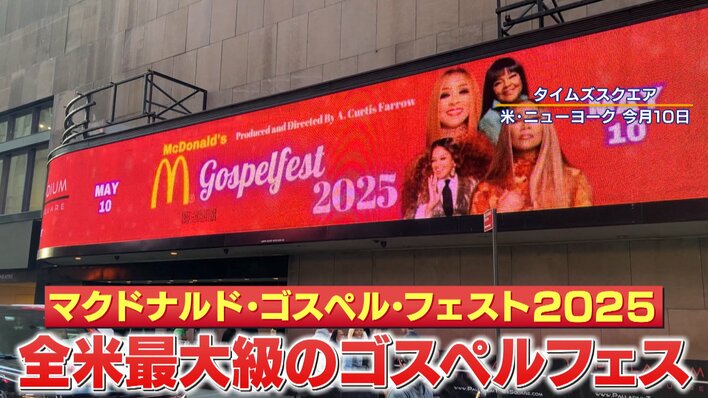 5月10日、世界のエンタメの中心地、ニューヨーク・タイムズスクエアで開催された全米最大級のゴスペルフェス「マクドナルド・ゴスペル・フェスト2025」で、新たな歴史が刻まれました。