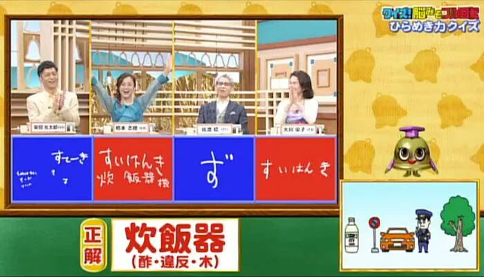 正解は「炊飯器(酢・違反・木)」。橋下と大川の2人が見事に正解!