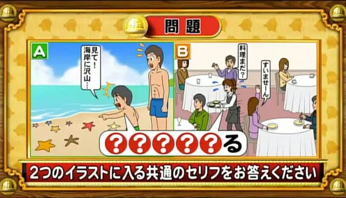最後は、共通セリフ問題。次の2つのイラストに入る共通のセリフを答えよ。