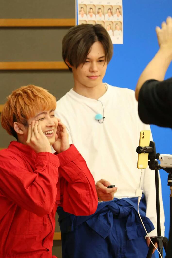 だが、これまで以上に顔の形を変えられるため、メンバーの変顔ビジュアルはどんどん大胆な内容に…。「それは破壊力高い(笑)」(ユーキ)、「誰!?」(リョウガ)とメンバー同士で笑いにつつまれるほか、河本マネージャーもタクヤの写真を見ながら「タクヤくんですか、これは?」と驚きを隠せない。