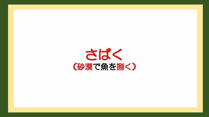 「[?]を魚を[?]」。「?」に共通する言葉を入れてダジャレを完成させてください。
