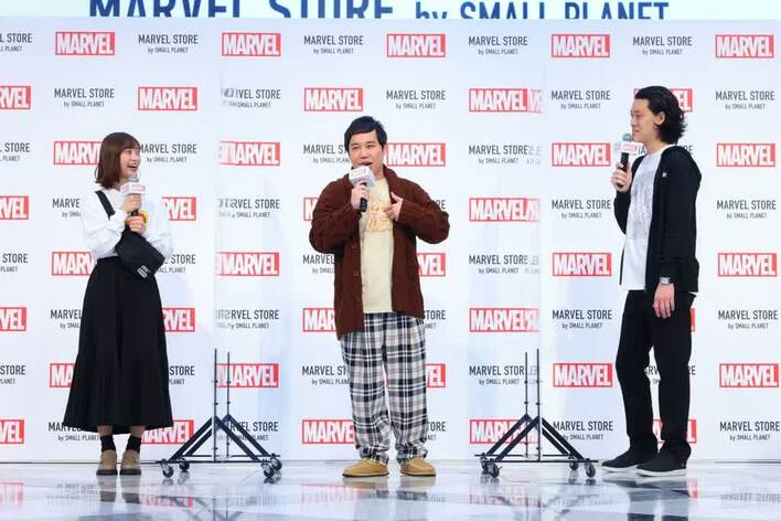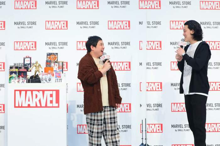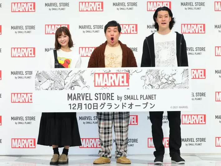 霜降り明星(粗品、せいや)と松川星が、日本初のMARVELグッズ専門店「MARVEL STORE by SMALL PLANET」のオープニングイベントに12月9日出席した。