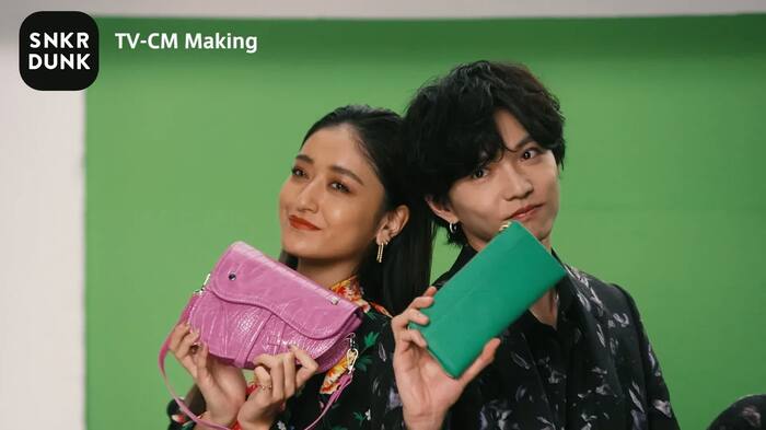 CMでは、2人がハイブランドの大きなバッグに囲まれながらテンポよく繰り広げる軽妙なトークや、コールに合わせて振りつけを披露。みちょぱと佐藤の2人は、CM中のコールを披露すべく、複雑なリズムに合わせて休憩中にも何度も手の動きを練習していたそう。初のCM共演ということで当初は少し緊張した雰囲気もあった2人だが、テンポが合わず監督から熱烈な指導を受けるうちに思わず「恥ずかしい!」と顔を見合わせて笑い合う場面も。佐藤はEXILEのパフォーマーとして活躍していることもあり、当日伝えられた振りつけにも関わらずさすがの完成度。みちょぱさんも撮影が終わると「いいんじゃない!?完成が楽しみ」と明るい笑顔を見せていた。