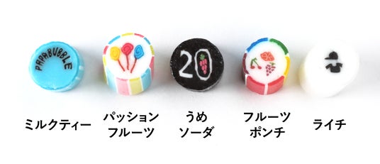 X(旧Twitter)で実施したお客様参加型の投票企画をもとに、特に人気の高かったフレーバーを厳選しました。またパパブブレを象徴するフルーツやロリポップ、職人のシルエットなどをモチーフにして、カラフルにデザインしました。
