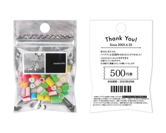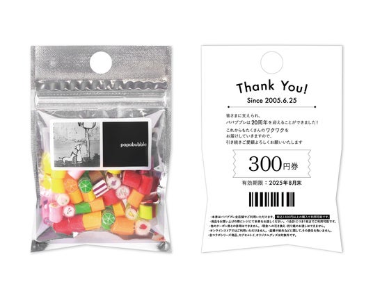 Craft Candy Theater「PAPABUBBLE/パパブブレ」は、これまでの感謝とこれからの“ワクワク”を形にした、20周年記念の特別アイテムを、6月12日(木)より全国店舗及びパパブブレ公式サイト(https://papabubble.co.jp/collections/papabubble_20th)にて発売いたします。