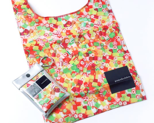 「フルーツミックス」をモチーフにした華やかなキャンディ柄のエコバッグを、実際のキャンディBAGとほぼ同サイズの専用ポーチに収納。実用性とデザイン性を兼ね備えた、毎日使いたくなるアイテムです。