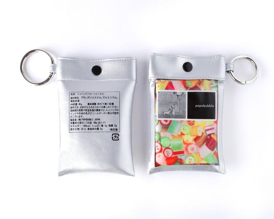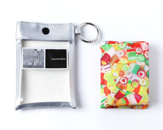 エコバッグ本体は、色とりどりのフルーツキャンディを全面にあしらったデザインで、遠目にも目を引き、ファッションのアクセントとしてもお楽しみいただけます。また、収納ポーチは実際のキャンディBAGを再現した透明窓付きデザインで、裏面のディテールにもこだわりました。エコバッグだけでなく、スマートフォンや文房具などの小物収納にも活躍します。