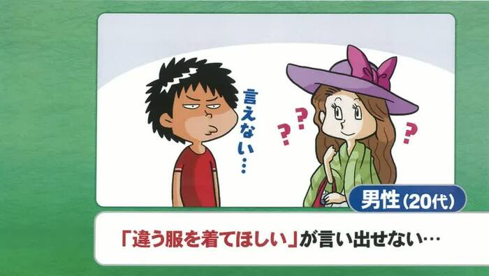一方、「デートに着てくる服がダサい彼女に、違う服を着てほしいと言いたい」という20代男性のお悩みには、大神が「基本的には自分が好きな服を着るべきだと思うけれど、男性は『こういう服のほうが似合うんじゃない?』など、言い方を工夫するべき」とアドバイス。