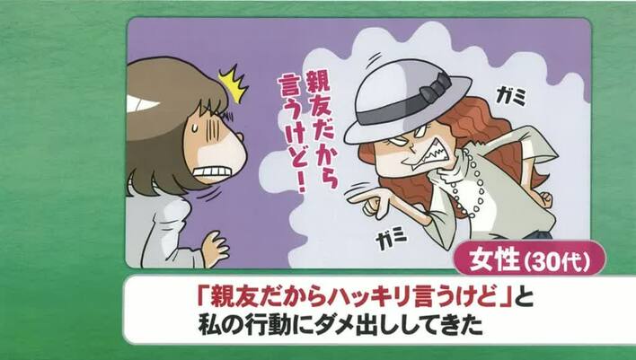 投票の結果は、「アリ=23%」「ナシ=77%」。しかし千秋は、「大人になるとダメ出ししてくれる人は少なくなるのだから、むしろありがたいと思うべき」と言い、大神も「ダメ出しを受け入れられないということは、本当は親友ではなかったのでは?」と指摘した。