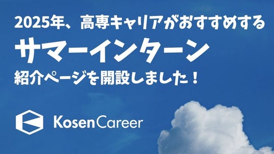 株式会社高専キャリア研究所(本社:東京都千代田区、代表取締役:兼城 駿一郎、以下「高専キャリア」)と、高専キャリアを運営する株式会社みらいスタジオ(本社:東京都千代田区、代表取締役:兼城 駿一郎、以下「みらいスタジオ」)及びテックランチャー株式会社(本社:東京都千代田区、代表取締役:野村 泰暉、以下「テックランチャー」、3社を総称して「みらいスタジオグループ」といいます)は、高専4年生及び専攻科1年生を主な対象としたサマーインターンシップの紹介ページを開設し、公開したことをご報告いたします。