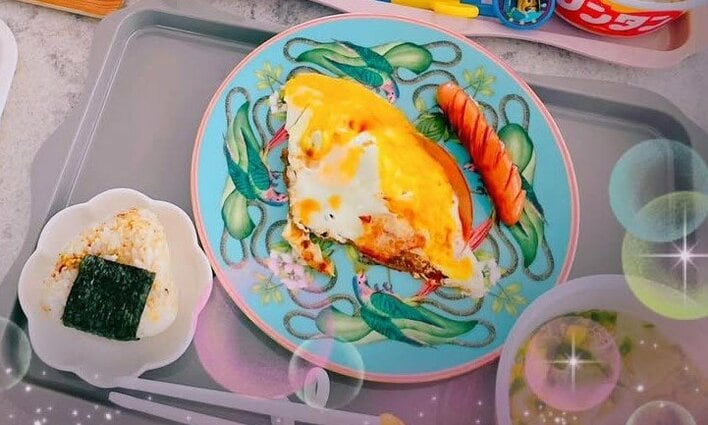 公開された写真には、子供たちのために平さんが準備した朝ごはんがテーブルに並べられている様子が!それぞれの皿にはご飯にウインナーと目玉焼き、ハムなどが用意されています。