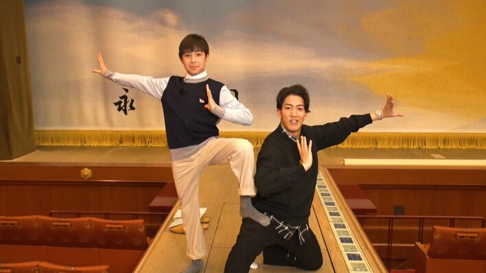 歌舞伎が大好きでテンションマックスの神田愛花さんは、舞台にあがり、花道の説明を受けるなか、突然2人に無茶なお願いをし始め…。しかし、気前良くお願いに応じた2人は、カメラの前で「見得」を披露。