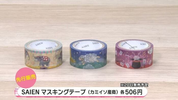 先行販売されるマスキングテープは可愛らしい動物柄がプリントされていて、金箔や銀箔を使いキラキラ加工が施されている。