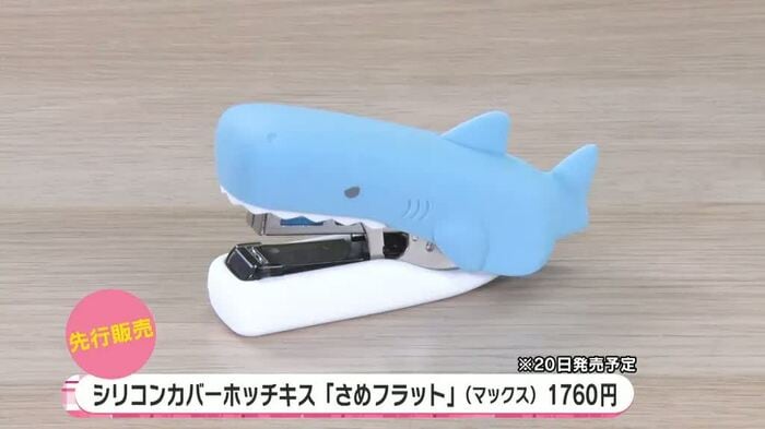 一方、こちらはかわいいサメがモチーフのシリコンカバーホッチキス。見た目がかわいいだけでなく、閉じた裏側の針が平らになるため書類を重ねてもかさばらない工夫がされている実力派だ。