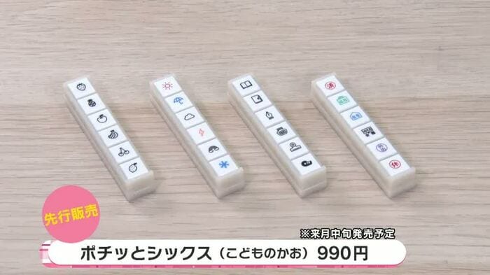 こちらの「ポチッとシックス」は、イラストがついたボタンをポチッと押すだけできれいに押すことができるスタンプ。6つの柄がセットになったスタンプが全部で12種類あり、コンパクトで持ち運びにも便利なので外出先でも手軽に使用できる。