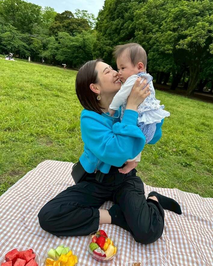 生後7ヵ月の娘・にこりちゃんと、ピクニックを楽しむ様子を公開しました。