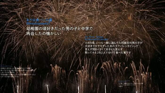 ムービー内で花火と一緒に表示されるメッセージは、「カルピス」公式Twitterで募集し、ユーザーのから投稿された、初恋のエピソードが使用された。