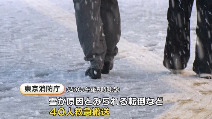 東京消防庁によりますと、雪が原因とみられる転倒などで40人が救急搬送されたということです。