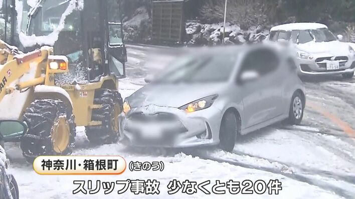 神奈川県・箱根町では少なくとも20件のスリップ事故が発生。