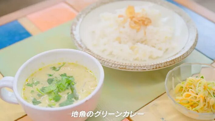 櫻井:まさかグルクンをカレーに入れて、食べるなんて思ってもみなかったのですが、これがいいお出汁も出て、身もホロっとやわらかくて、グリーンカレーにとっても合っています。クミンがシードですごくいっぱい入っていて、それがかなり個性的だなと思いました。