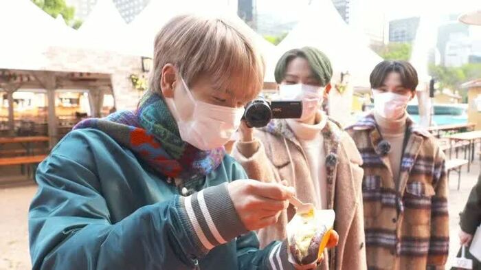 おいしいご飯を食べて、温かい飲み物を飲んで、かわいい雑貨に癒やされた3人。マーケットを楽しみながら話していたのはクリスマスの思い出だ。去年のクリスマスはJO1のメンバー全員でクリスマスプレゼント交換会をしたそうで、川尻はバナナの絵が描いてあるTシャツを貰い今では大事にパジャマにしていると明かした。