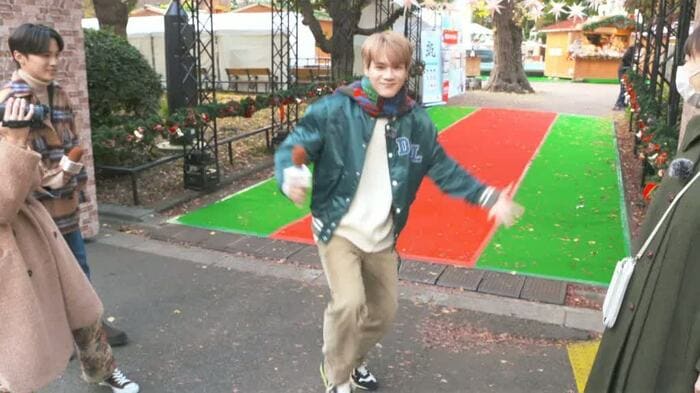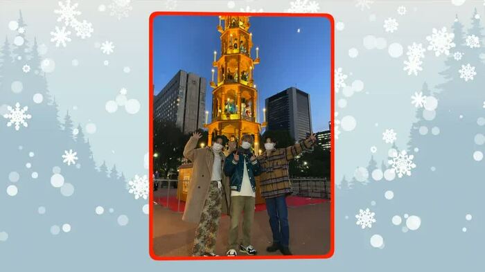 クリスマスマーケットは初めてという3人は、マーケット入り口から早くもワクワクを隠せない様子。豆原が「リポート頑張るぜ!」とキレッキレダンスを披露した。