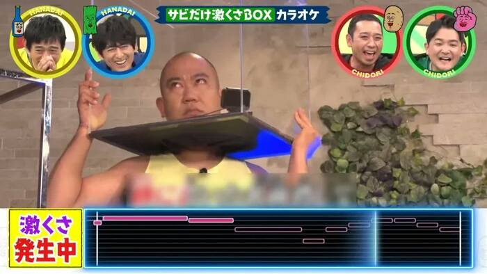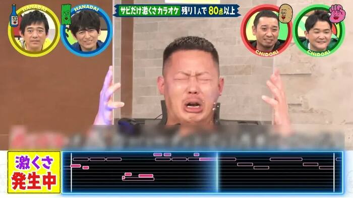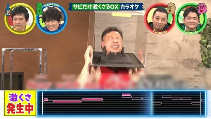 サビ以外は普通に歌い、サビになるとおならの臭いが充満した”激くさBOX”を頭から装着。強烈な臭いと戦いながら1曲の点数を競う。