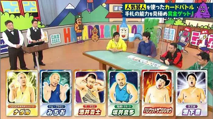 これまで個人戦だった企画が、今回から全員で相談して芸人カードを選ぶ団体戦へとリニューアルした。