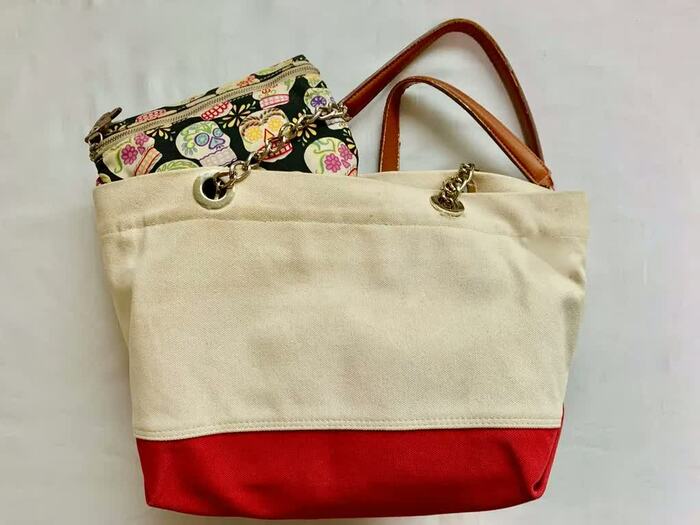 撮影に使用したバッグは、A4サイズ。持ち歩くバッグのサイズによって、ポーチに入れる携帯トイレを変えてもよいのかもと感じた。