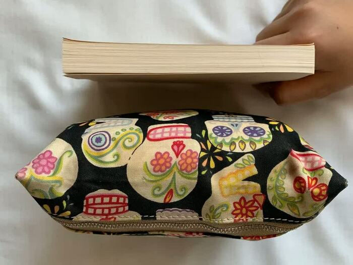 そして、普段持ち歩いている財布にお札は入っているので、小銭は最低限に絞って、お気に入りのポーチに詰め込んでみた。ポーチのサイズは、文庫本2冊分くらいの大きさ。