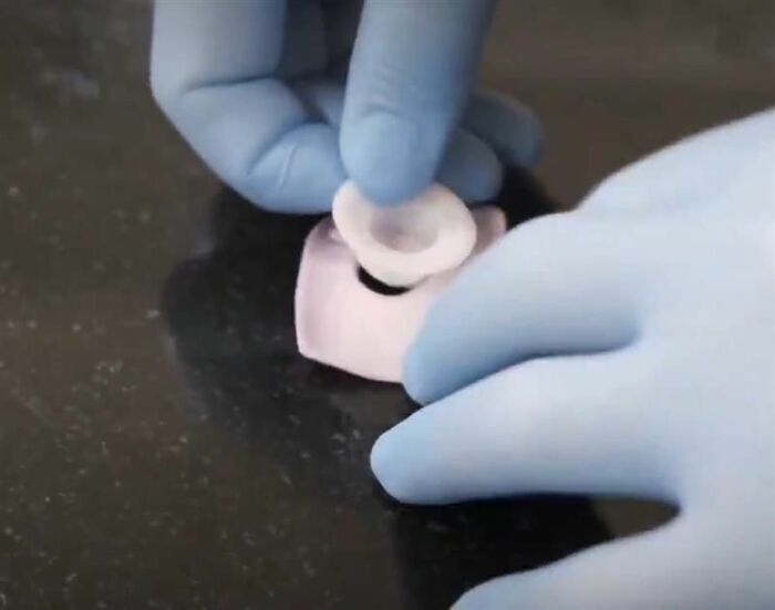 くりぬかれた丸く薄いハイチュウをこねていき、しずくのような形に仕上げます。