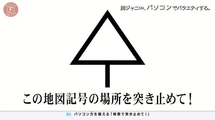 2問目は「この地図記号の場所を突き止めて!」。横山が「地図記号」で検索をかけて「地図記号一覧」ページからあっという間に正解の「裁判所」であることを突き止める。スムーズに検索できたことで、2人は「楽しくなってきた!」と少しテンションが上がっていた。