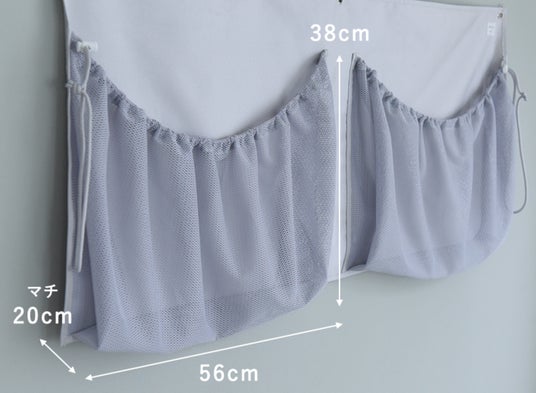 ポケットは2つに分かれていて、お部屋の角にL字に取り付けることも可能です。
