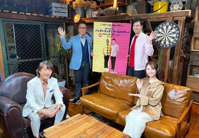 お笑いライブに行くのが趣味のまつきと、普段からパックンマックンのYouTubeを見ているというOSSHYは、爆笑&大興奮。さらに、15年ぶりの開催が決定している単独ライブ「二刀流でメジャー25周年!パックンマックン ワールドツアー!」の話で、4人のトークは大盛り上がりとなる。