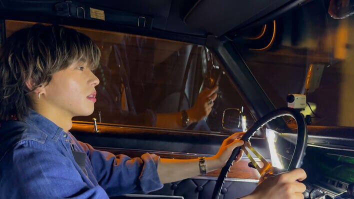 今回は、村重杏奈さんが、末様の「オモロいデートプラン」を体験。村重さんが待ち合わせ場所で待っていると、そこにアメ車を運転する末様が登場。