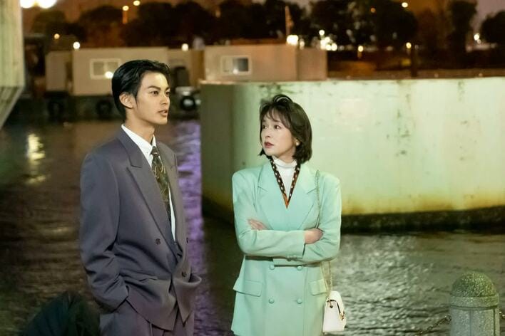 神尾は、肩パット入りスーツに興味津々で「遠藤っぽくないシーンだけど、これがラストカットというのも『顔だけ先生』っぽいですね」。スタイリストによれば、神尾の衣装は、1986年の大ヒットドラマ『男女7人夏物語』(TBS)からインスピレーションを受けたものだそう。