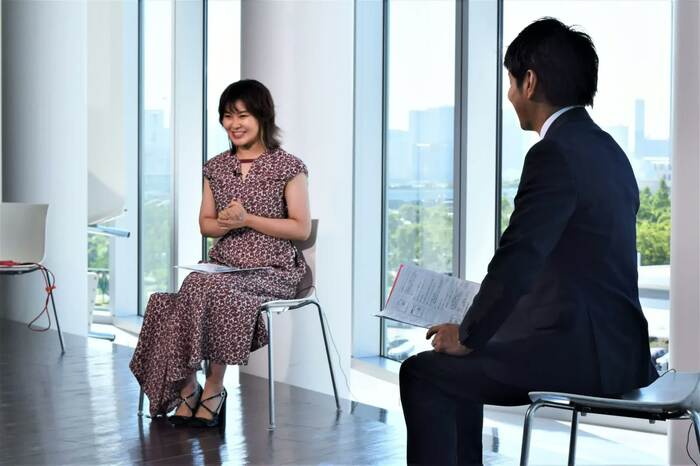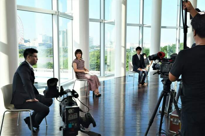 そして、「では、本番参ります!よろしくお願いします」との岡耕平ディレクターの掛け声で、本番がスタートした。まずは、ある選手とのリモート中継から。その選手に、ファンから「セルフ解説をしてほしい」とのリクエストが来ているとのことで、選手が自分の演技を見ながら解説。「うわぁ、初々しい顔をしていますね~」と村上も画面に見入りながら、選手に質問をぶつけていく。