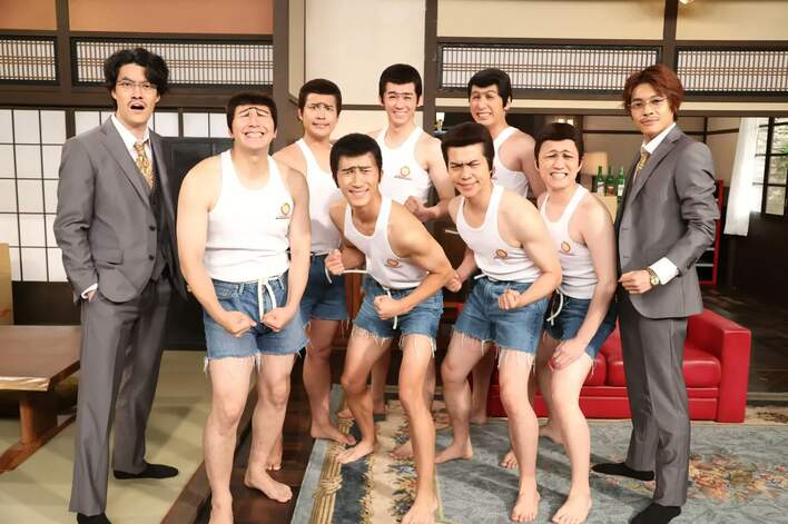 現れたのは、粗悪社長(粗品)ならぬ中間社長(中間淳太)。続けて中間社長が続々と力見西引越センターのメンバーを呼び込む。その名も力見大毅(重岡大毅)、力見照史(桐山照史)、力見智洋(神山智洋)、力見流星(藤井流星)、力見崇裕(濵田崇裕)、力見望(小瀧望)の6人。