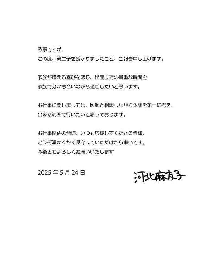 5月24日の投稿で、第2子を授かったことを公表すると、多くの祝福のメッセージが寄せられていました。
