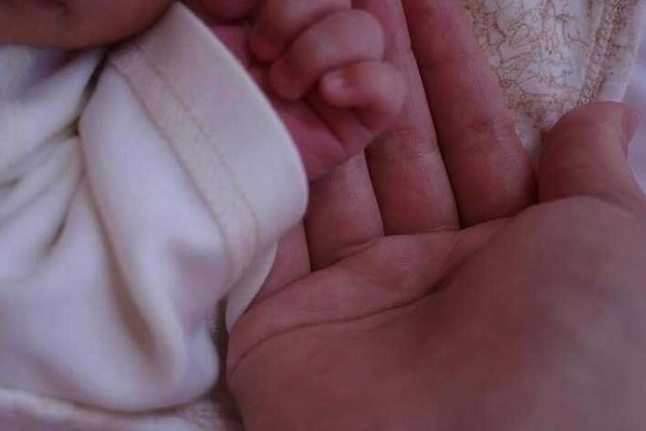 そこには、生まれたばかりの赤ちゃんの小さな手にそっと優しく添える宇野さんの手が映し出されています。かわいらしい手にほっこりしますね。