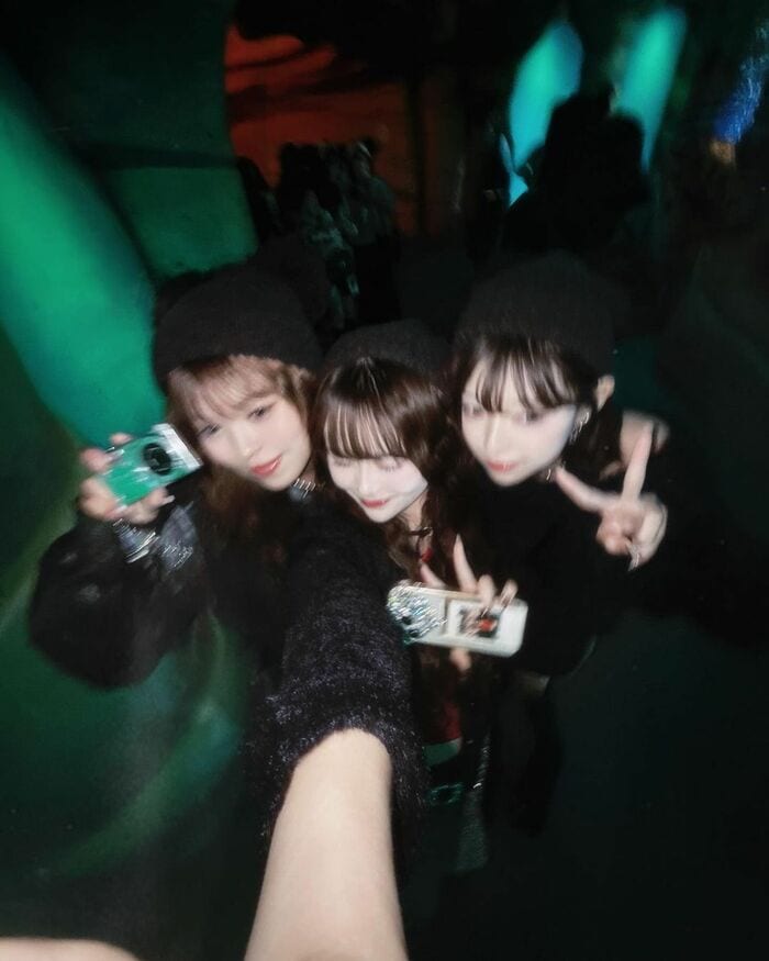 真ん中に写るさくらさんが両隣のMINAMIさん、おさきさんの顎に手を添え、顔を持っているようなショットも!