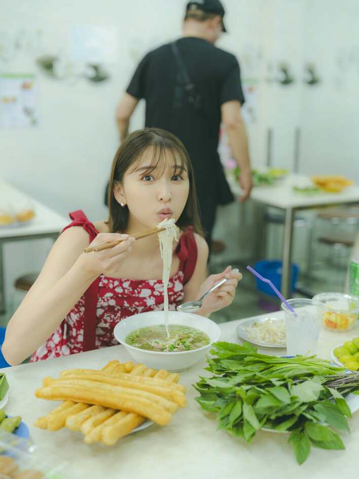 ほかにも、レストランで本場ベトナムのフォーを頬張ろうと「フーフー」しながらこちらに視線を向けるキュートな表情のカットや・・・