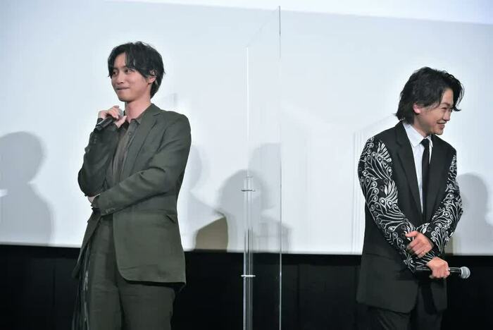 これに、谷口は「どうすればいいんですかね、この空気」と苦笑しつつ、「舞台版では太宰を他の役者が演じていて、今回、初めて田淵と共演することになったので、新しい関係を築きたいと思い、まったくしゃべらず、挨拶もしないで撮影しようと心に決めて臨んでいました」と種明かしを。