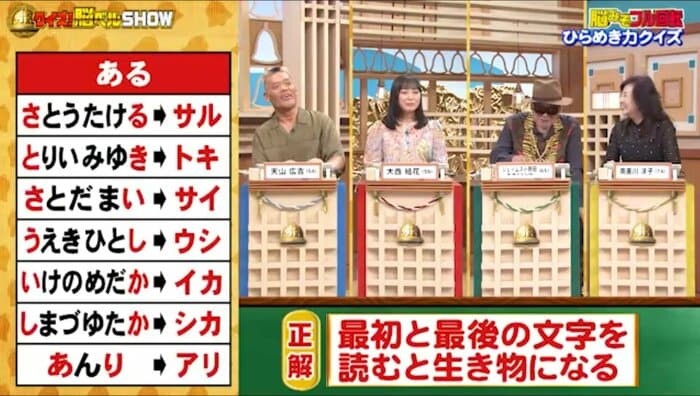 正解は「最初と最後の文字を読むと生き物になる」。
