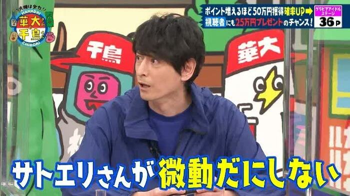 気合いを入れた回答だったが、場が静まり返ってしまい、0ポイント。東は、バツが悪そうに「ほらぁ」と一言。「(誰も)行かないから!間を埋めただけなんだよ!」と言い訳のように叫んだ。