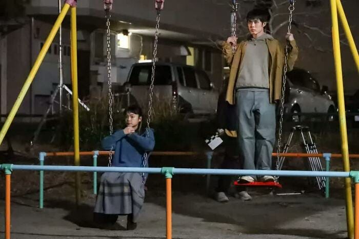 “旦那くん”(飯塚)との接し方に戸惑う次女と長男が会話するシーンは、日が暮れてから児童公園で行われた。細田は「ブランコの高さ、大丈夫ですか?」と古川を気遣うが、古川は「思ったより寒くなくてよかった!」と安心した表情でブランコをこぎ、ピョンと飛び降りるアクションも軽々と披露。