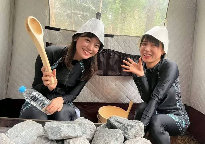 いまキャンパーの間で大ブームになっている、テントサウナも体験。フィンランド式のサウナで汗をかいたら、冬山の大自然の中で心と体をととのえる…冬キャンプならでは醍醐味を満喫。