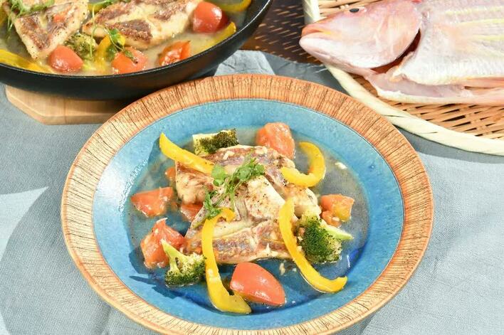 「子どもたちが初めて釣った魚を食べることが食育にもつながっている」と、初心者向けの釣り教室を営む三浦さんの活動について松岡が感心していると、いい香りの「イトヨリダイのアクアパッツァ」が完成。